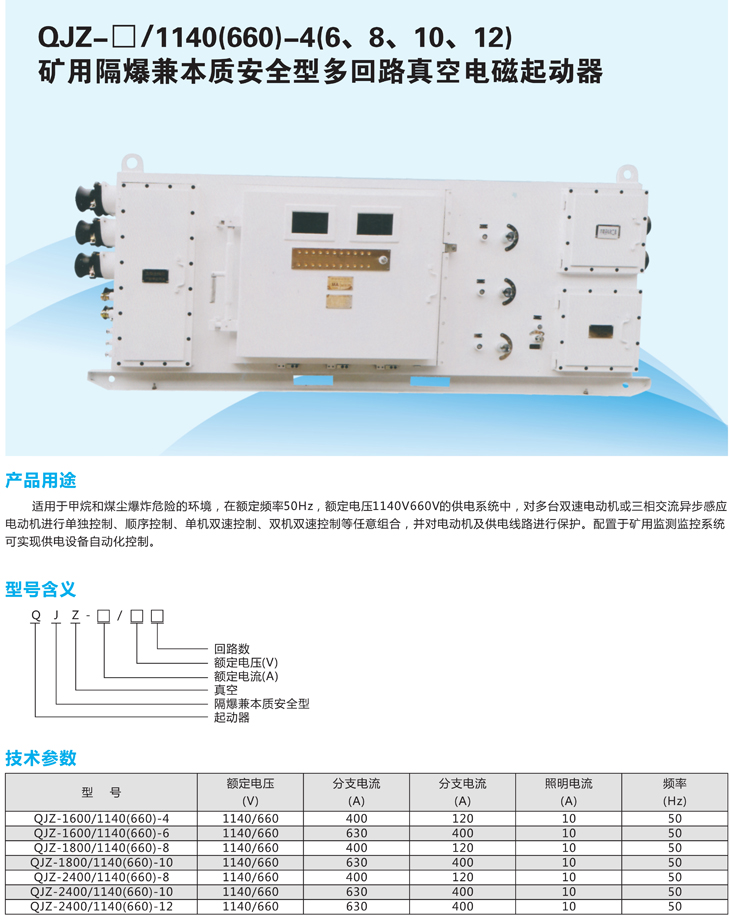 產(chǎn)品總匯>QJZ-口/1140(660)-4(6、8、10、12))礦用隔爆兼本質(zhì)安全型多回路真空電磁起動器