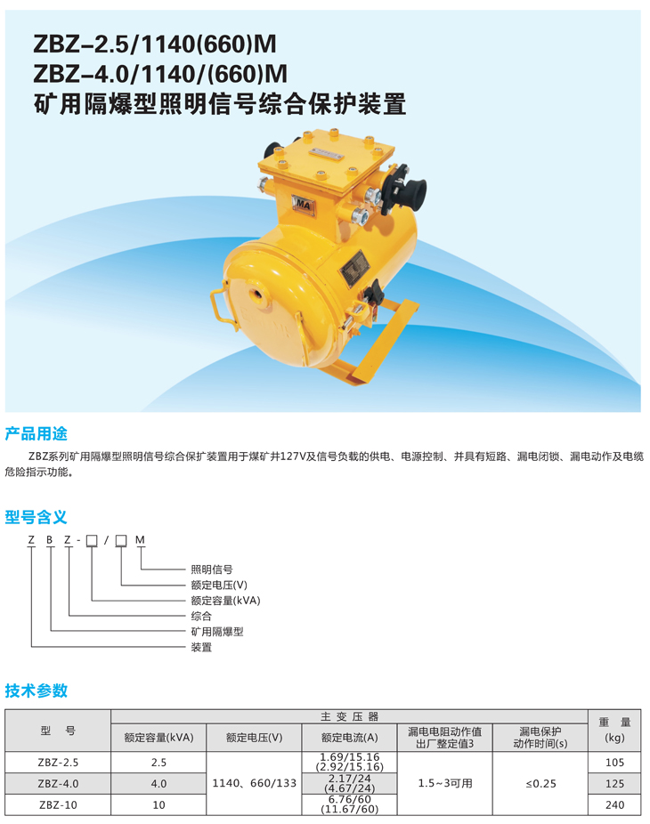 ZBZ-2.5(4.0)/1140(660)M礦用隔爆型照明信號綜合保護裝置