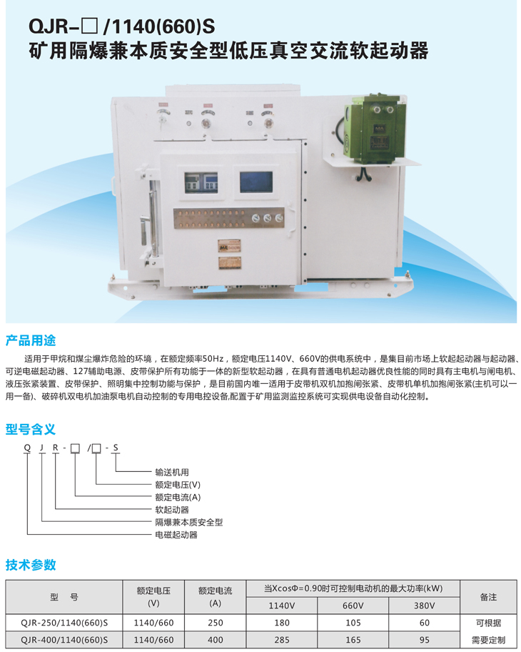 QJR-口/1140(660)S礦用隔爆兼本質安全型低壓真空交流軟起動器