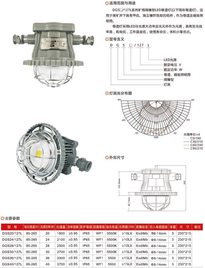 產品總匯>DGS20~40礦用隔爆型LED巷道燈