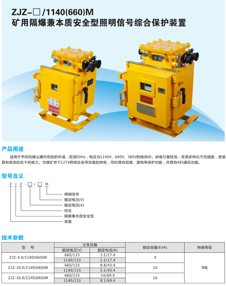 產品總匯>ZJZ-口/1140(660)M礦用隔爆兼本質安全型照明信號綜合保護裝置