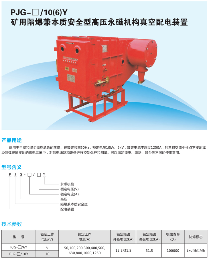 產品總匯>PJG-口/10(6)Y礦用隔爆兼本質安全型高壓永磁機構真空配電裝置
