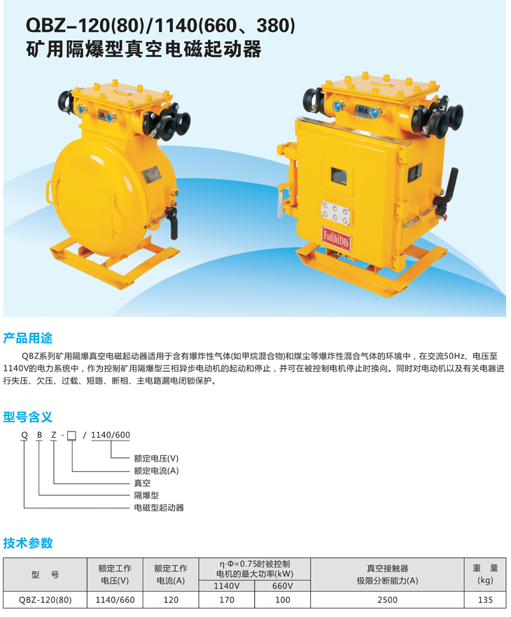 產品總匯>QBZ-120(80)/1140(660、380)礦用隔爆型真空電磁起動器