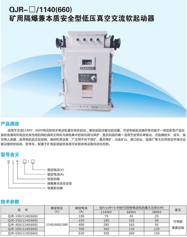 QJR-口/1140(660)礦用隔爆兼本質安全型低壓真空交流軟起動器