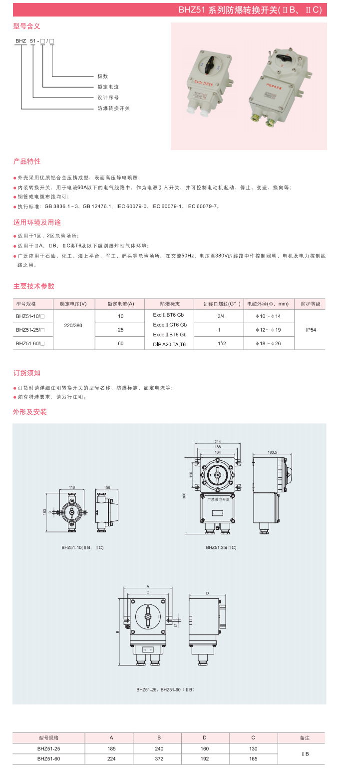 產品總匯>BHZ51系列防爆轉換開關(ⅡB、ⅡC)