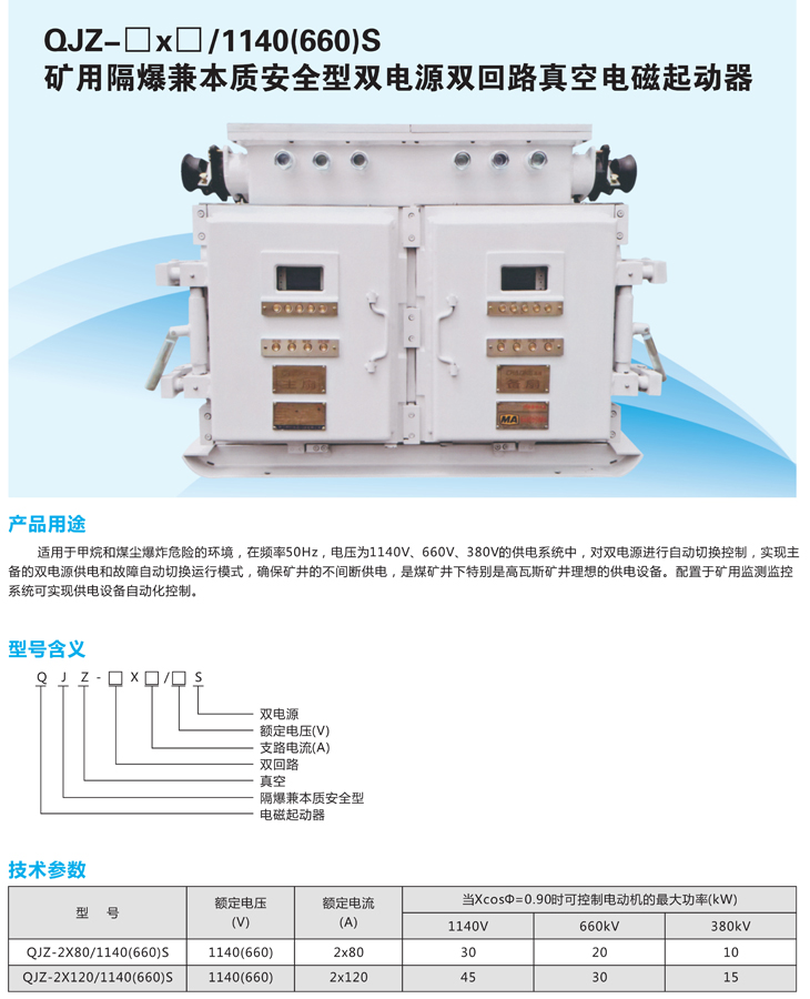 QJZ-口x口/1140(660)S礦用隔爆兼本質安全型雙電源雙回路真空電磁起動器